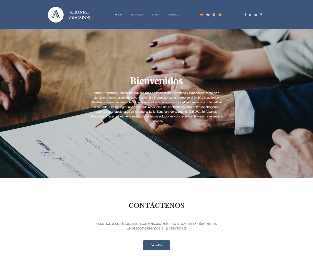 Diseño y desarrollo del website de presentación de su compañia, visible y operativo desde cualquier dispositivo.